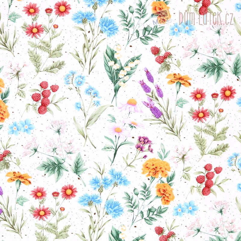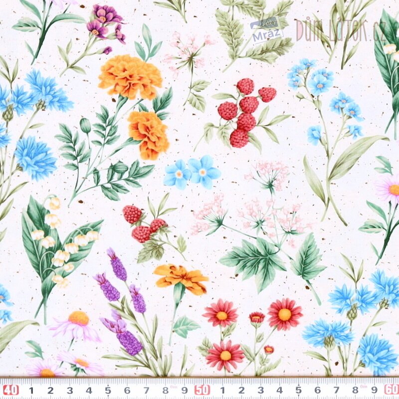 Bavlna Botanical Garden od firmy Robert Kaufman Fabrics s rostlinami.