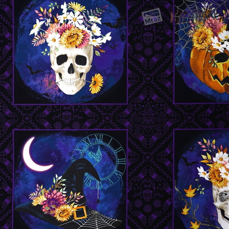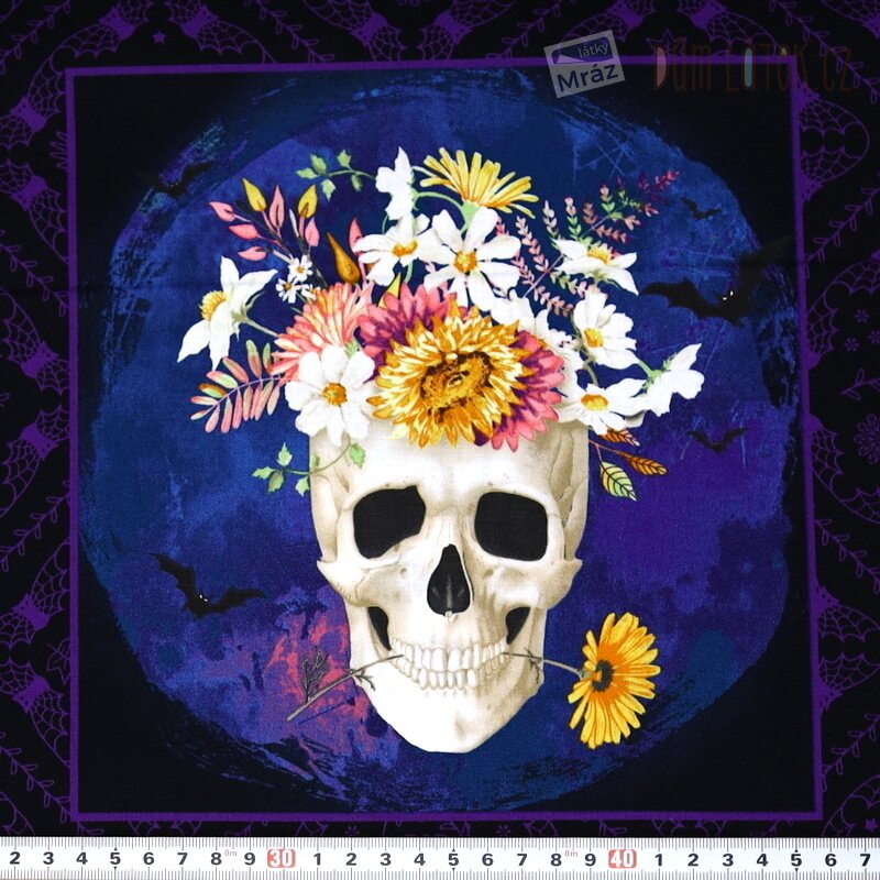Bavlna kolekce Bones and Bouquests s lebkami - panel