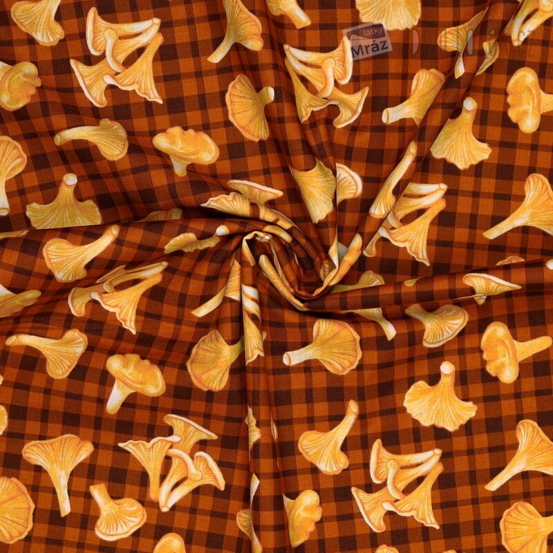 Bavlna kolekce Foliage & Fur Coats károvaná s houbami