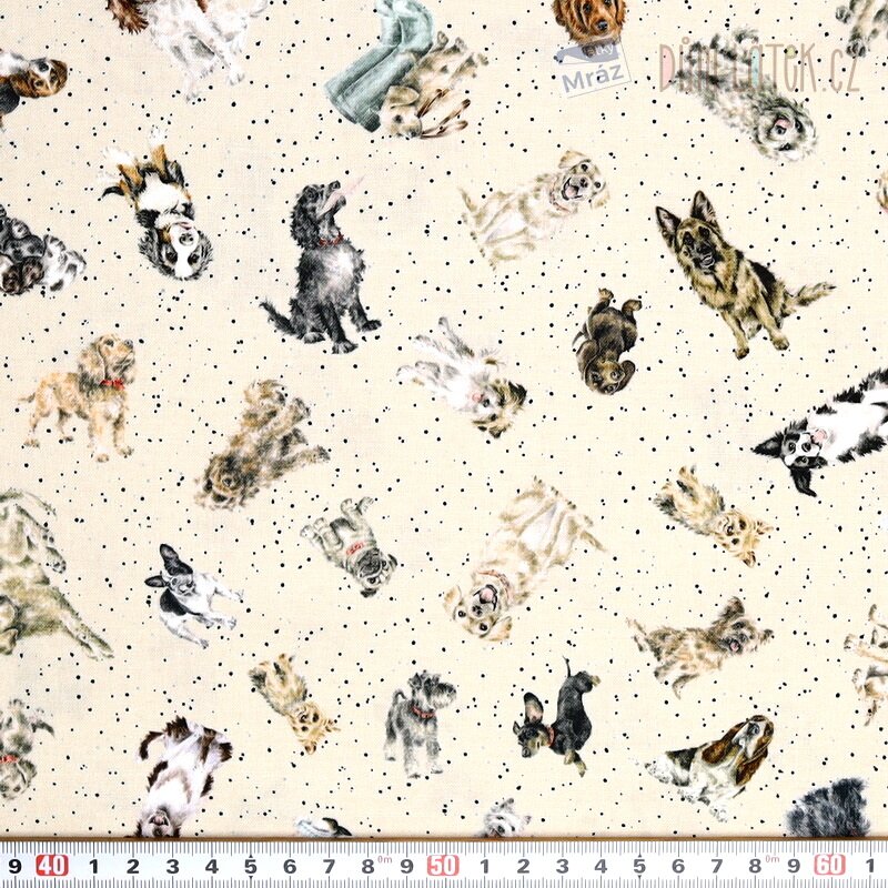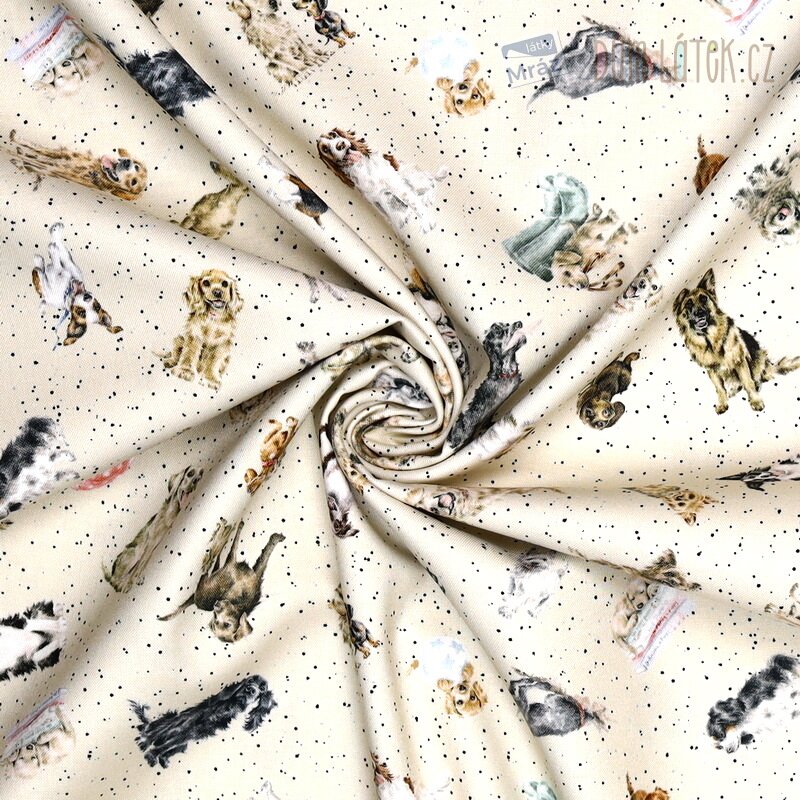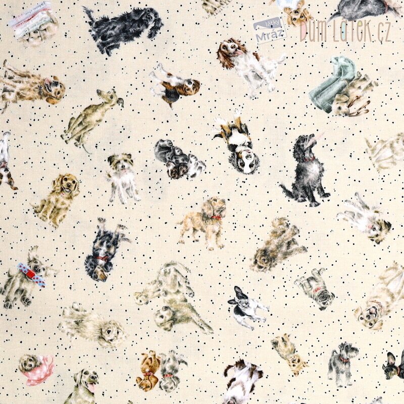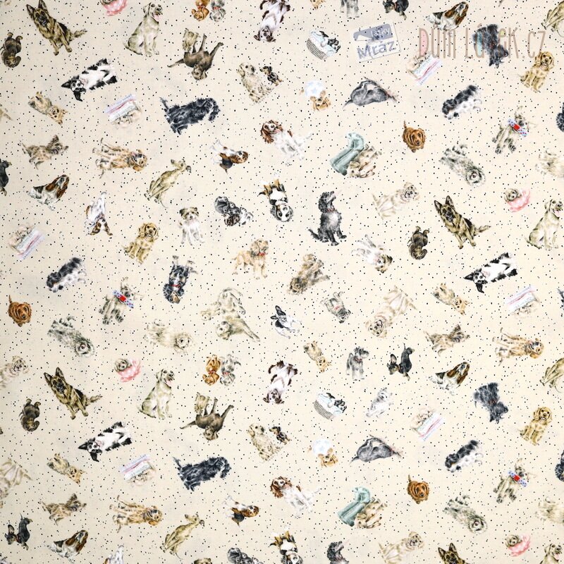 Bavlna kolekce Whiskers & Paws od firmy Maywood Studio se psy na béžovém podkladu.