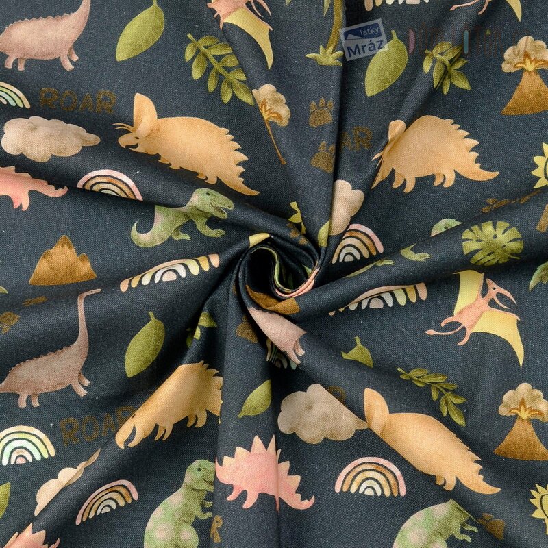 Velmi příjemná bavlněná látka s dinosaury. Je poddajná, dobře se s ní pracuje.