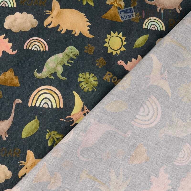 Bavlna s dinosaury, digitální tisk
