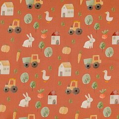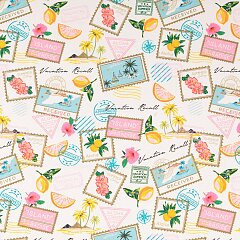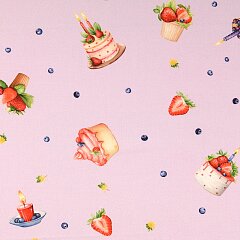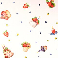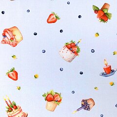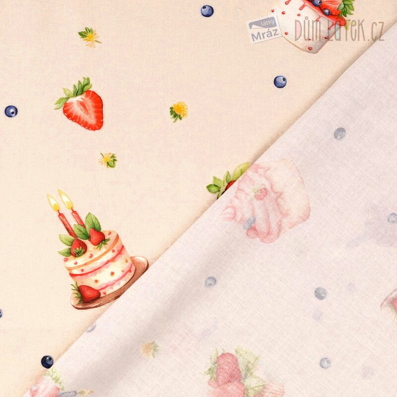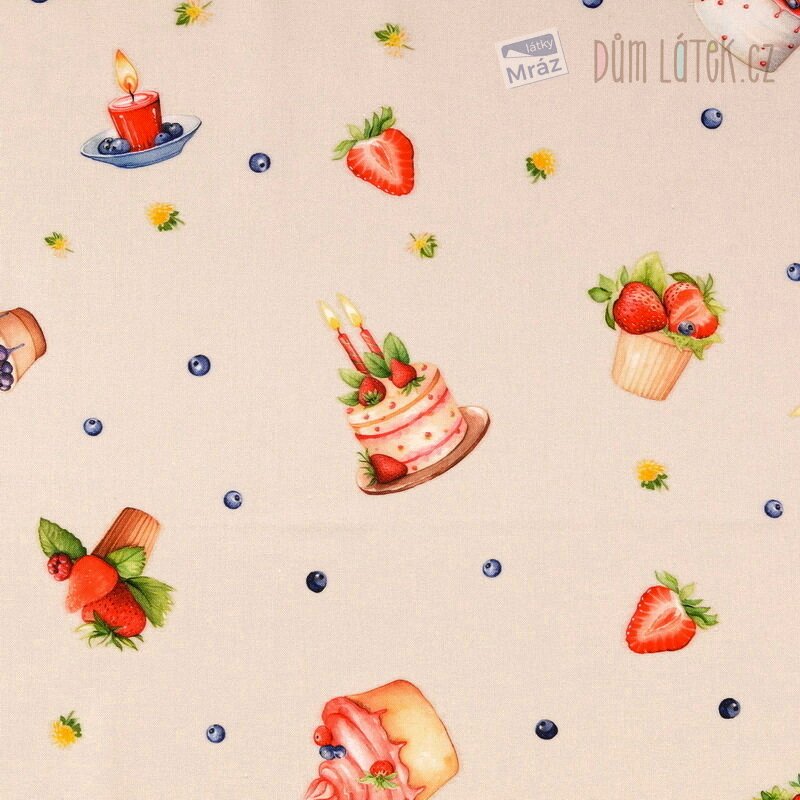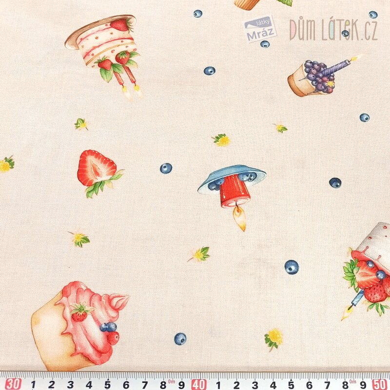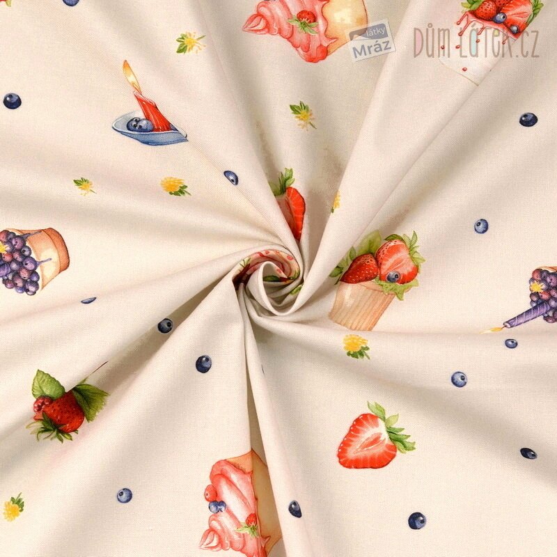 Příjemná bavlna s ovocnými dortíky na šedobéžovém podkladu.