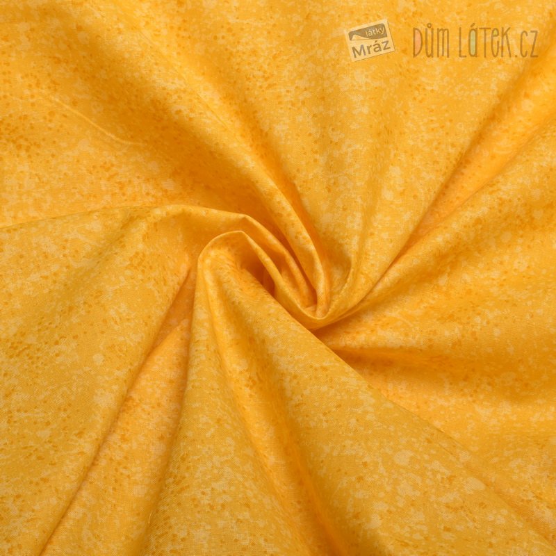 Velmi příjemná bavlněná látka s mramorovým vzhledem v žluté barvě. Je poddajná, dobře se s ní pracuje. Má všestranné využití, oděvní i dekorační. Vhodná je například na polštáře, povlečení, sukně i bytové doplňky.