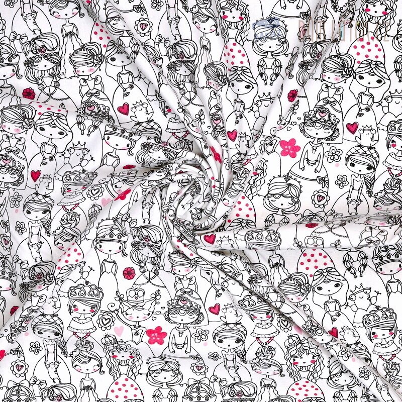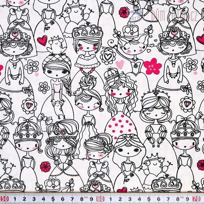 Příjemná bavlněná látka s princeznami. Je poddajná, dobře se s ní pracuje. Má všestranné využití, oděvní i dekorační. Vhodná je například na polštáře, povlečení, sukně i bytové doplňky.