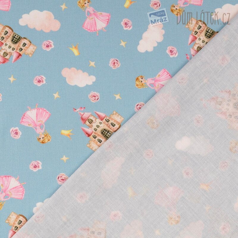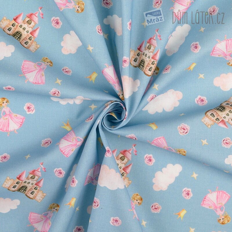 Příjemná bavlněná látka s princeznami. Je poddajná, dobře se s ní pracuje. Má všestranné využití, oděvní i dekorační. Vhodná je například na polštáře, povlečení, sukně i bytové doplňky.