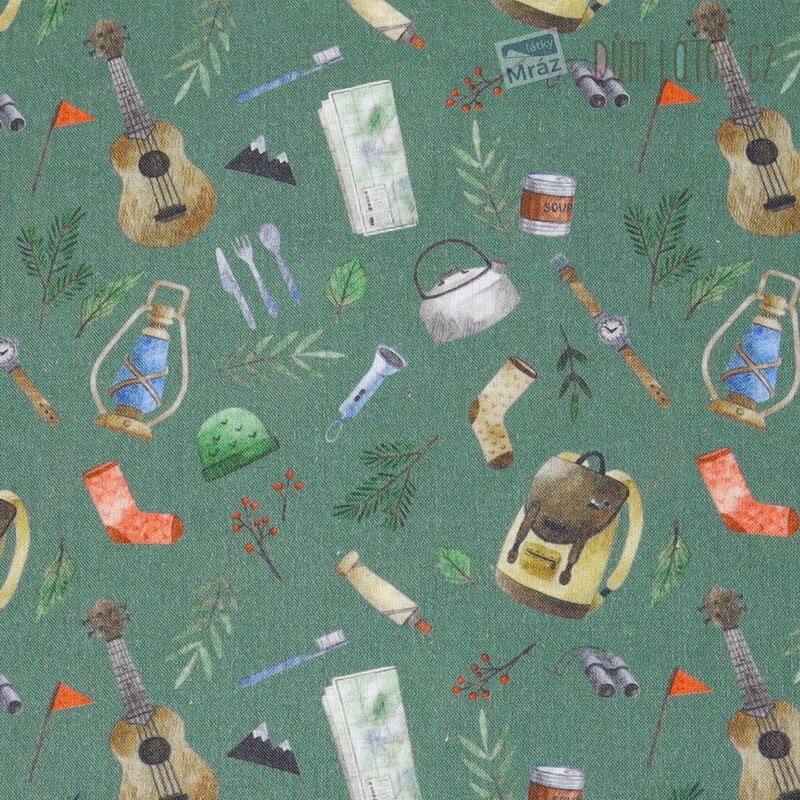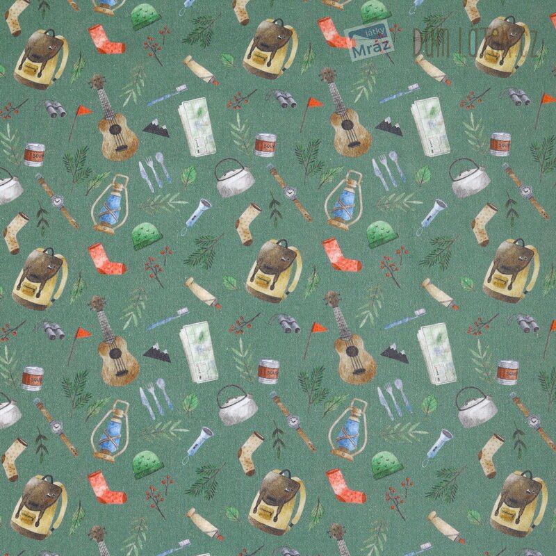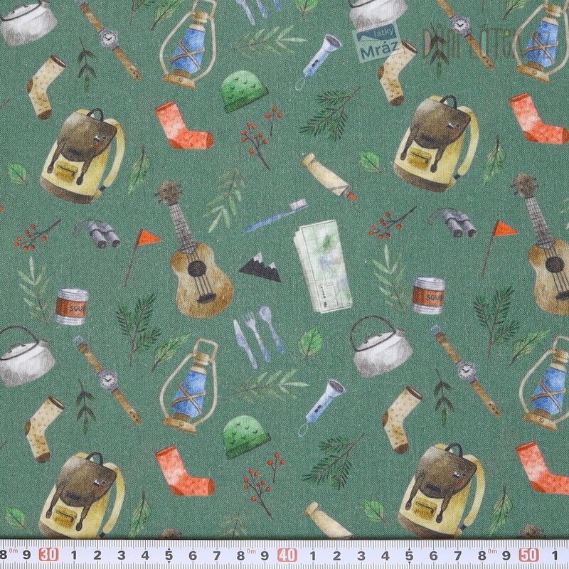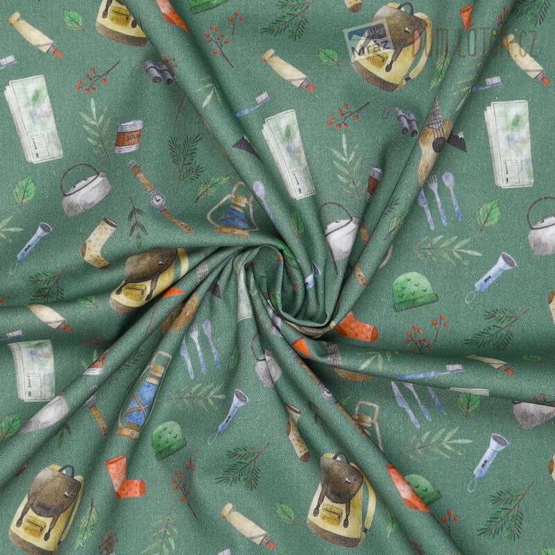 Velmi příjemná bavlněná látka s tábornickým motivem. Je poddajná, dobře se s ní pracuje.