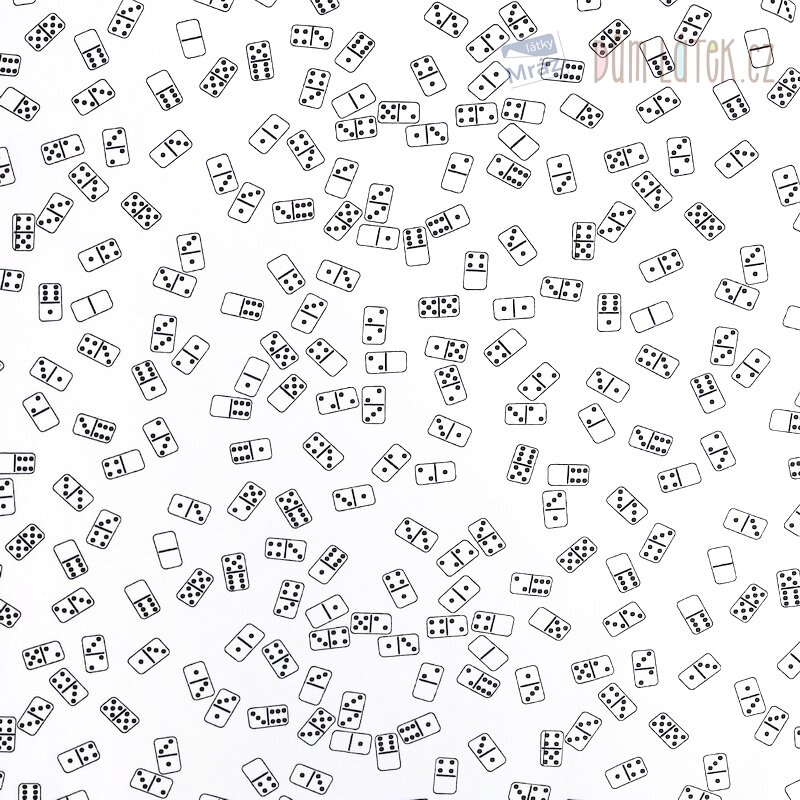 Velmi příjemná bavlněná látka s dominem. Je poddajná, dobře se s ní pracuje. Má všestranné využití, oděvní i dekorační. Vhodná je například na polštáře, povlečení, sukně i bytové doplňky.