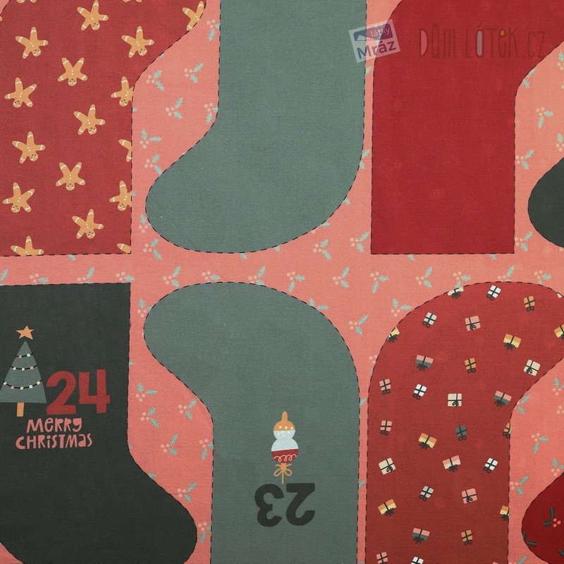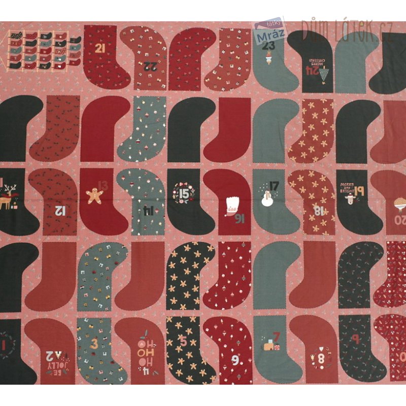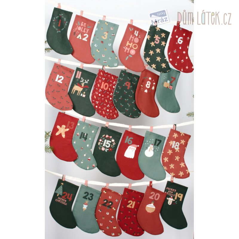 Velmi příjemná bavlněná látka s předtištěným vzorem k ušití adventního kalendáře. Jednoduché na ušití - stačí vystřihnout a sešít. Je poddajná, dobře se s ní pracuje. Vhodná jako dekorace na adventní výzdobu.