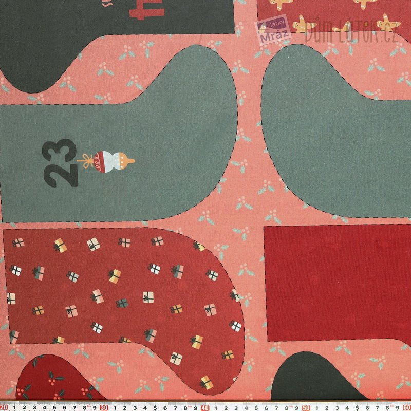 Bavlněný popelín s předtištěným střihem na adventní kalendář