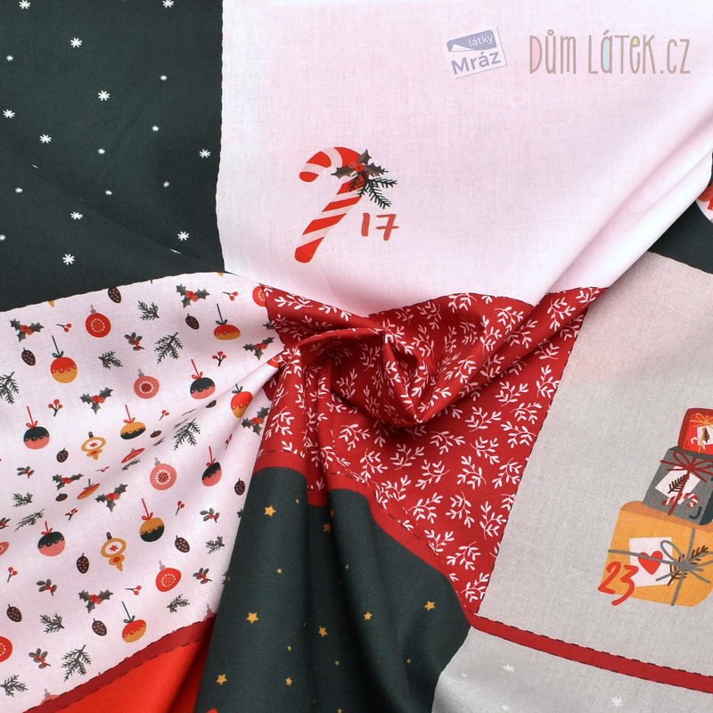 Bavlněný popelín s předtištěným střihem na adventní kalendář