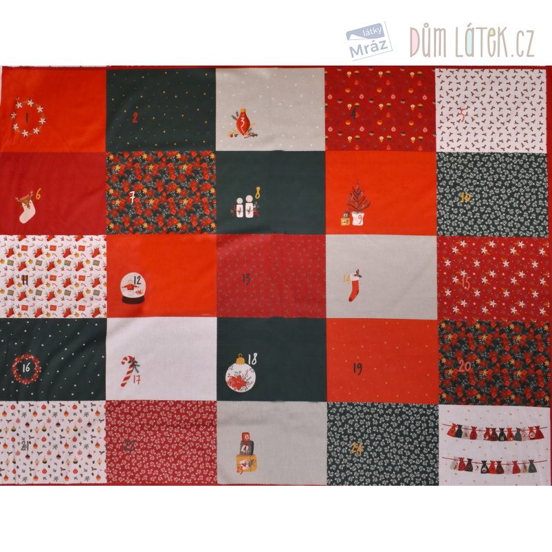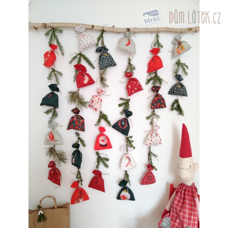 Velmi příjemná bavlněná látka s předtištěným vzorem k ušití adventního kalendáře. Jednoduché na ušití - stačí vystřihnout a sešít. Je poddajná, dobře se s ní pracuje. Vhodná jako dekorace na adventní výzdobu.
