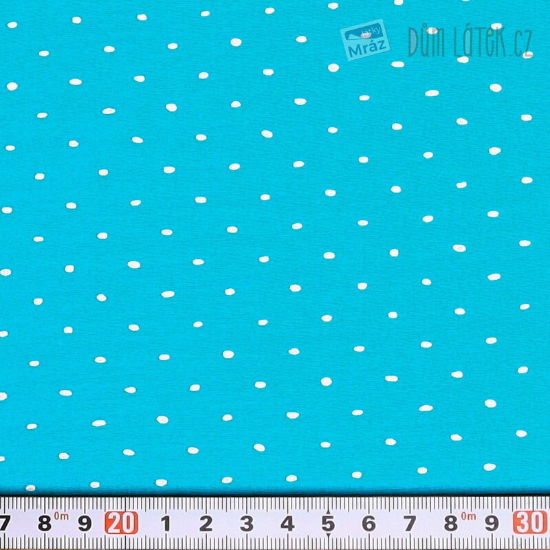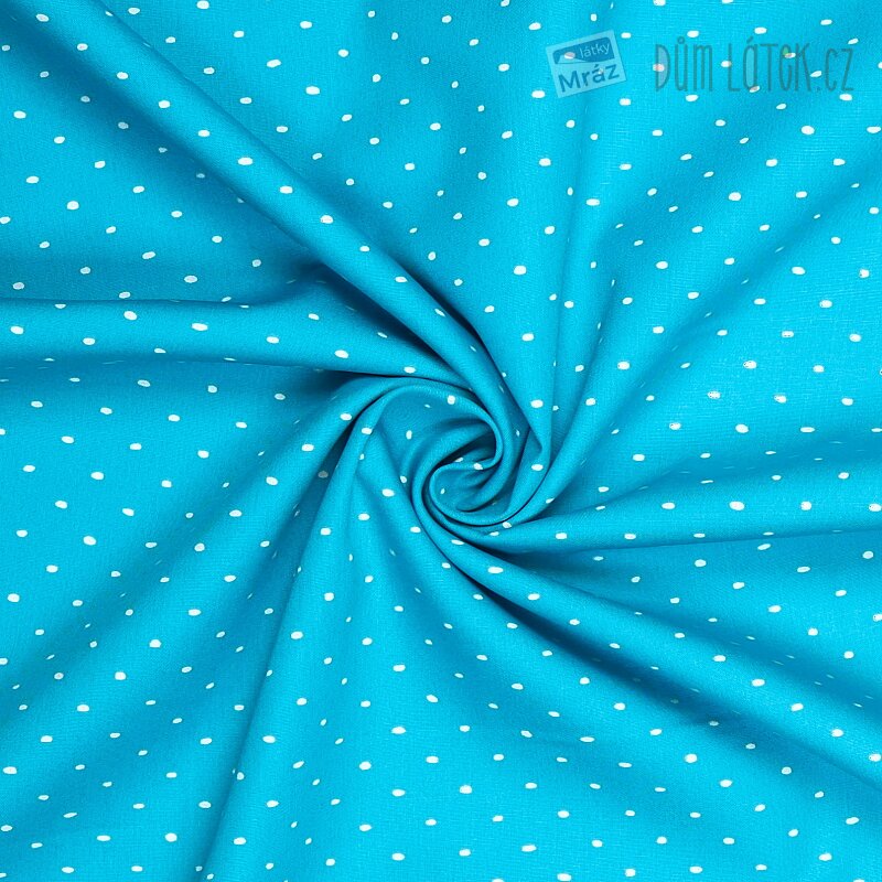Velmi příjemná bavlněná látka s puntíky. Je poddajná, dobře se s ní pracuje. Má všestranné využití, oděvní i dekorační. Vhodná je například na polštáře, povlečení, sukně i bytové doplňky.