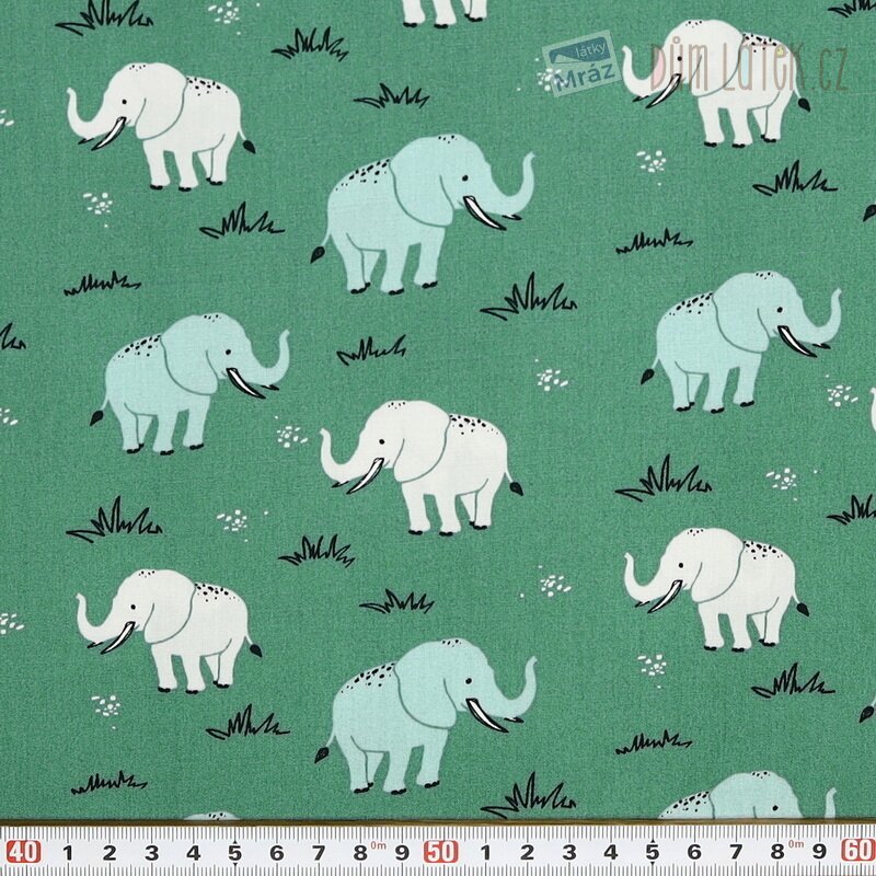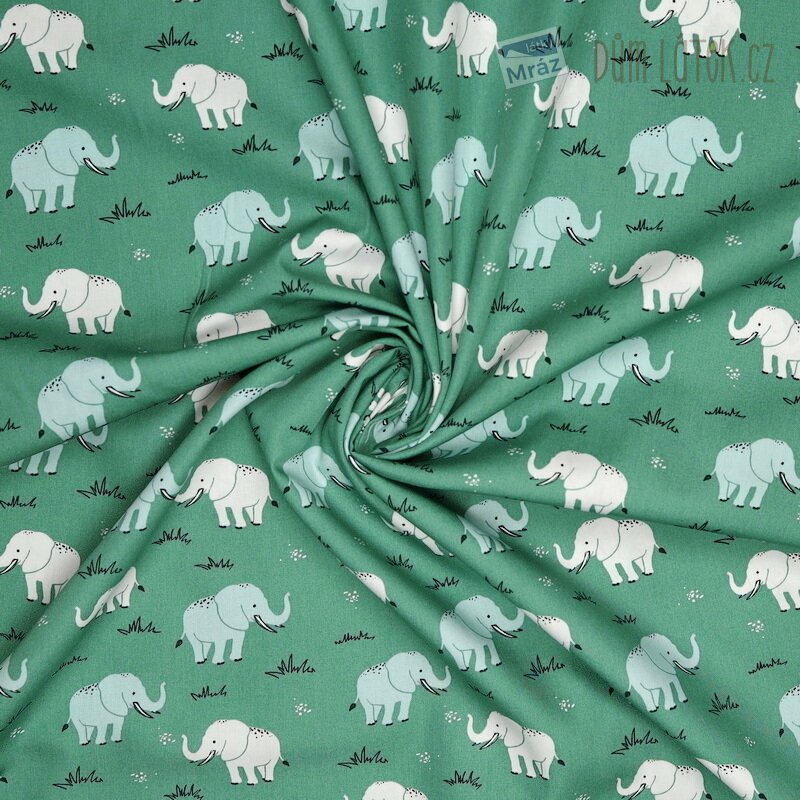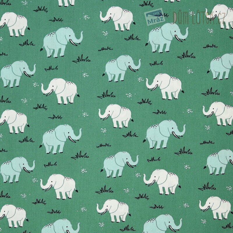 Velmi příjemná bavlněná látka se slony. Je poddajná, dobře se s ní pracuje. Má všestranné využití, oděvní i dekorační. Vhodná je například na polštáře, povlečení, sukně i bytové doplňky.
