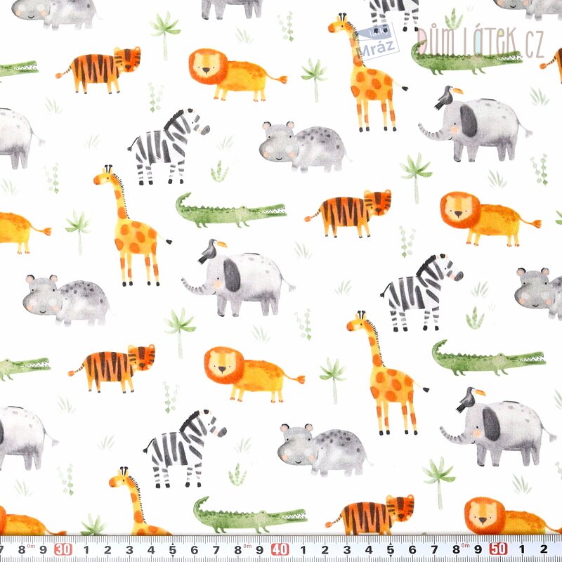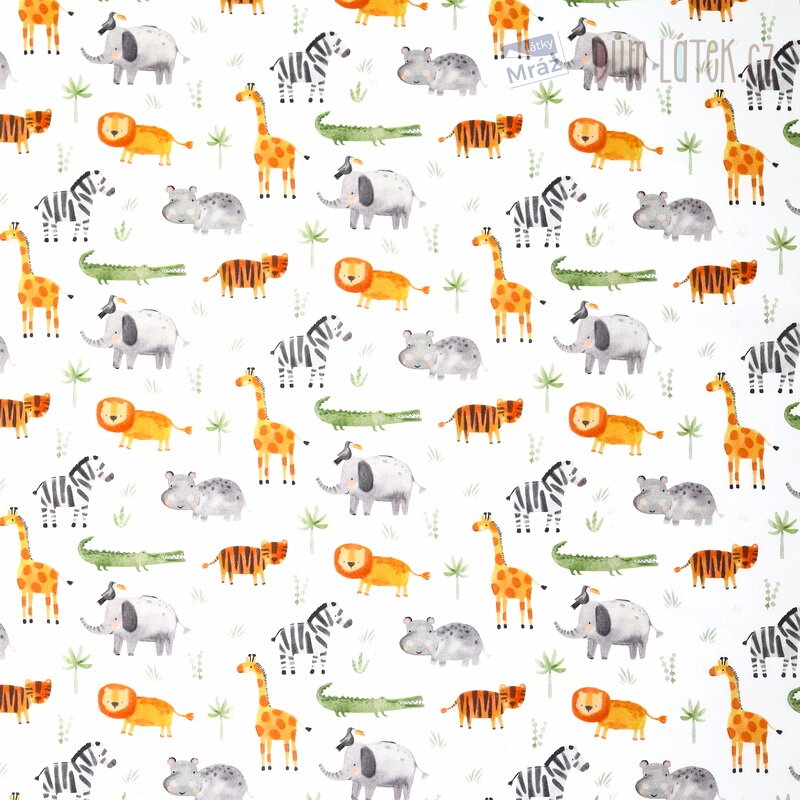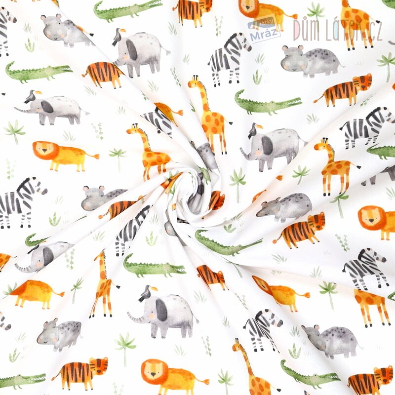 Velmi příjemná bavlněná látka se safari zvířátky. Je poddajná, dobře se s ní pracuje. Má všestranné využití, oděvní i dekorační.