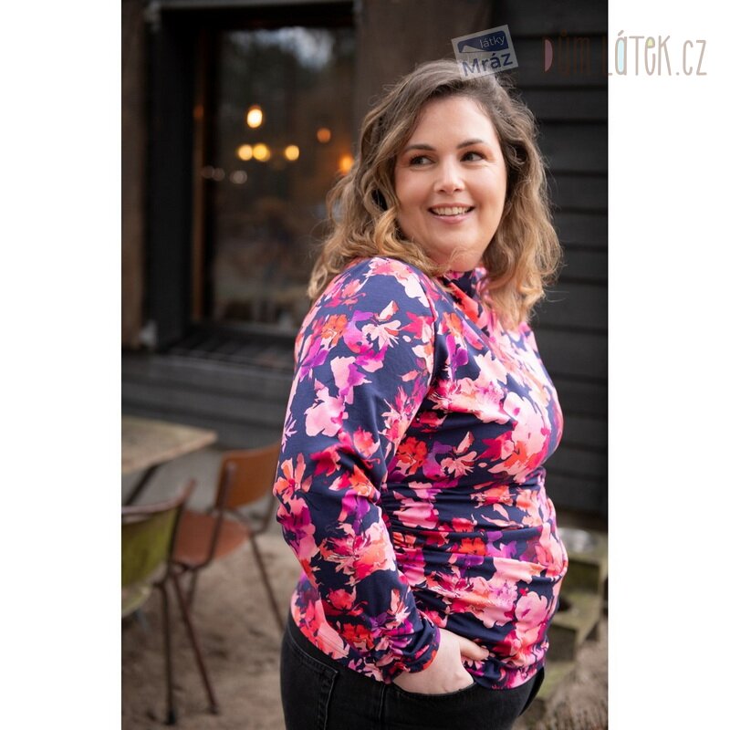 Krásný a příjemný úplet s květy. Látka je hladká a poddajná, proto se s ní snadno pracuje.