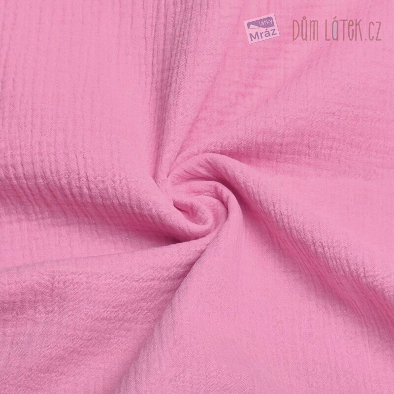 Bio Dvojitá gázovina v růžové/fialové barvě. Látka je lehká, příjemná na omak, měkká, poddajná, vhodná na letní šaty, sukně, košile, kalhoty.