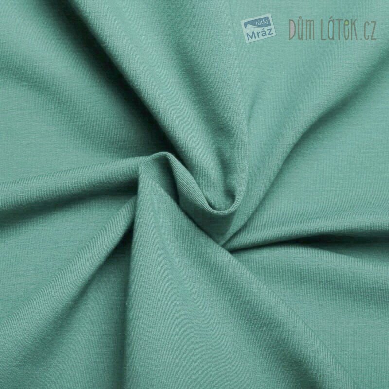 Příjemný French Terry úplet v zelené barvě je měkký, hladký a pružný materiál.