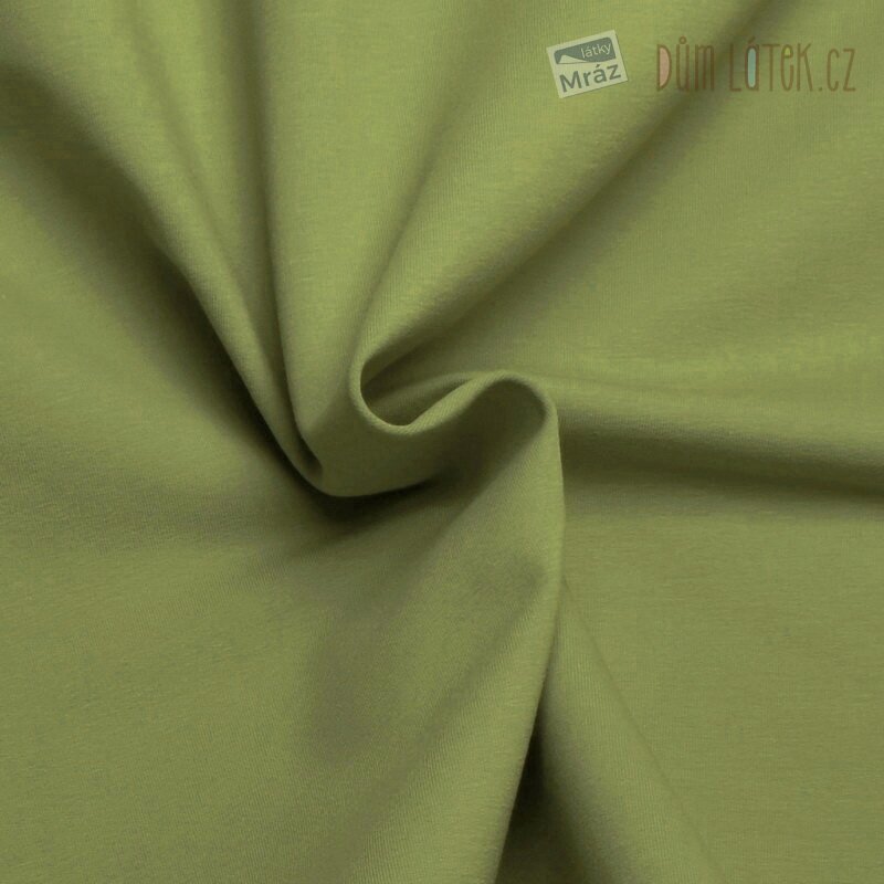 Příjemný French Terry úplet v zelené barvě je měkký, hladký a pružný materiál.