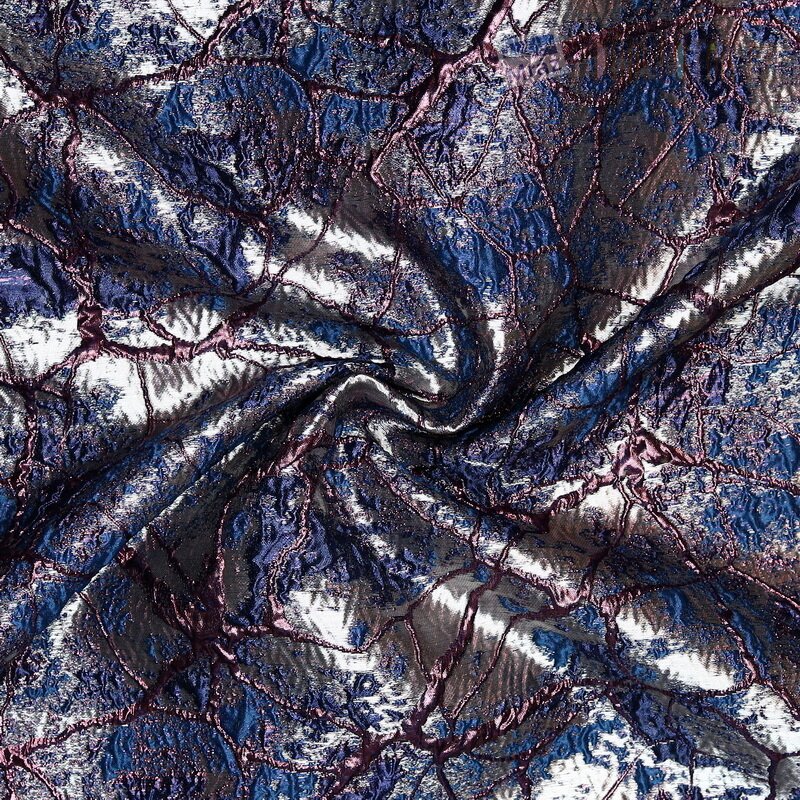 Kvalitní brokát s plastickým vzorem protkávaný metalickým vláknem.