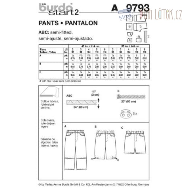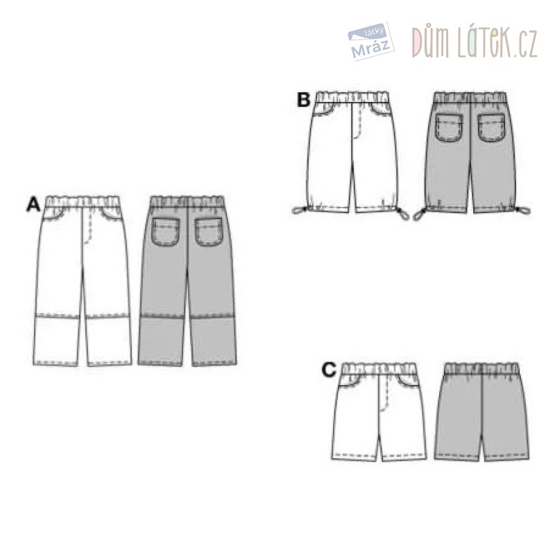 Obsahuje 3 varianty střihu na dětské kalhoty.