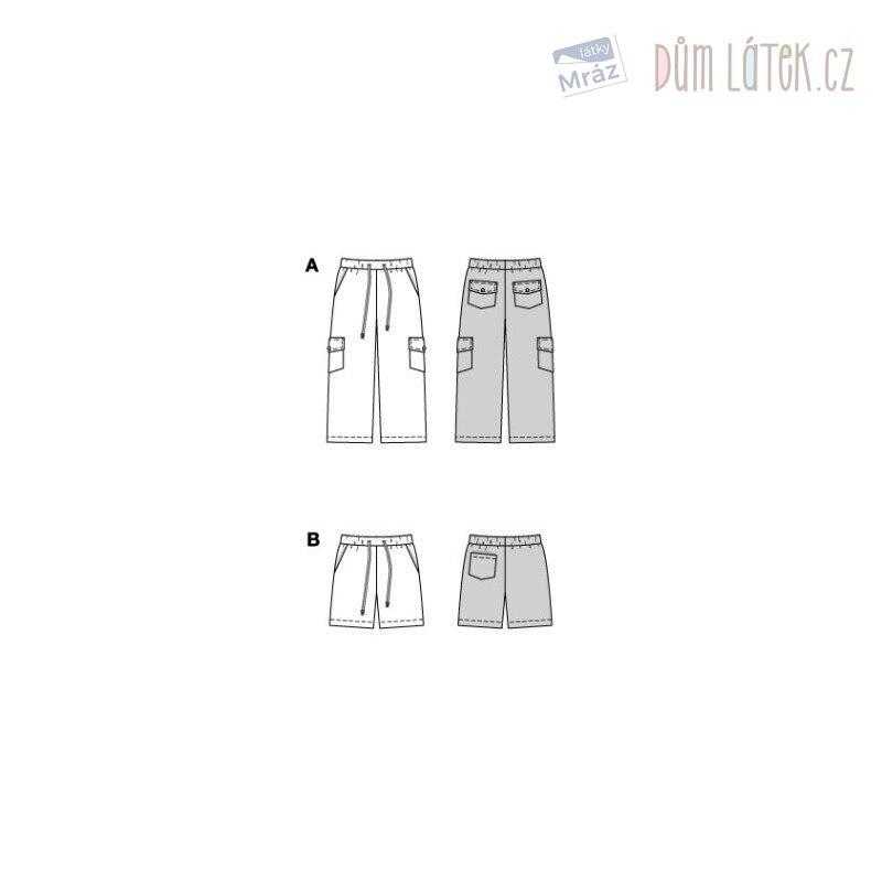 Obsahuje 2 varianty střihu na kalhoty a kraťasy.