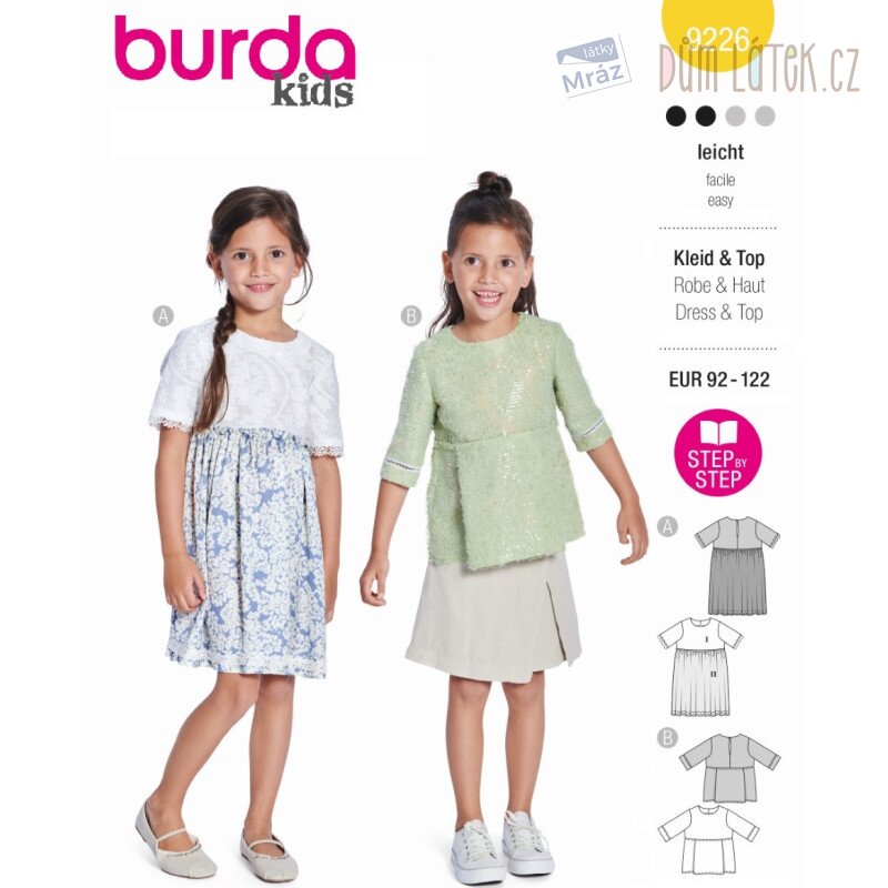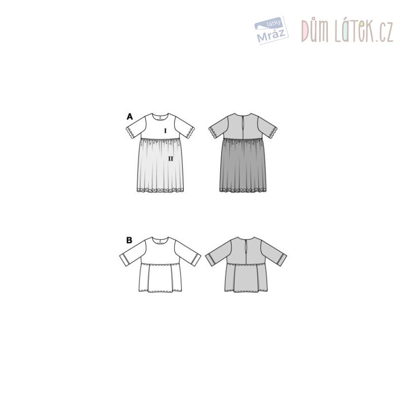 Obsahuje 2 střihy na tričko a šaty.