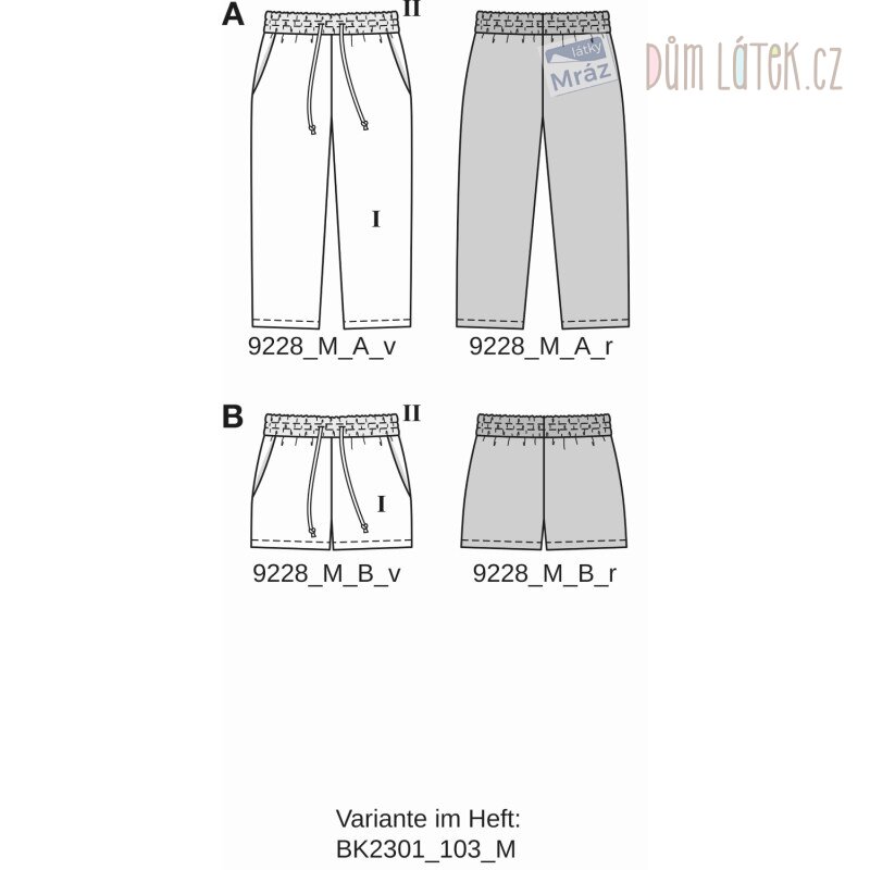 Obsahuje 2 varianty střihu na kalhoty a kraťasy.