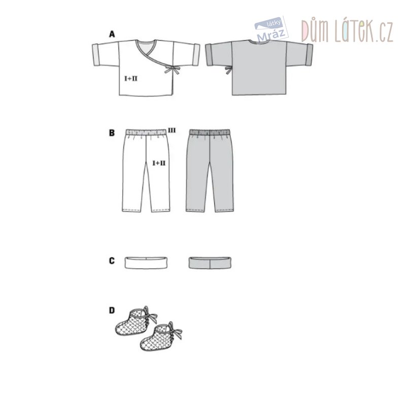 Obsahuje 4 střihy na dětskou sadu oblečení a doplňků.