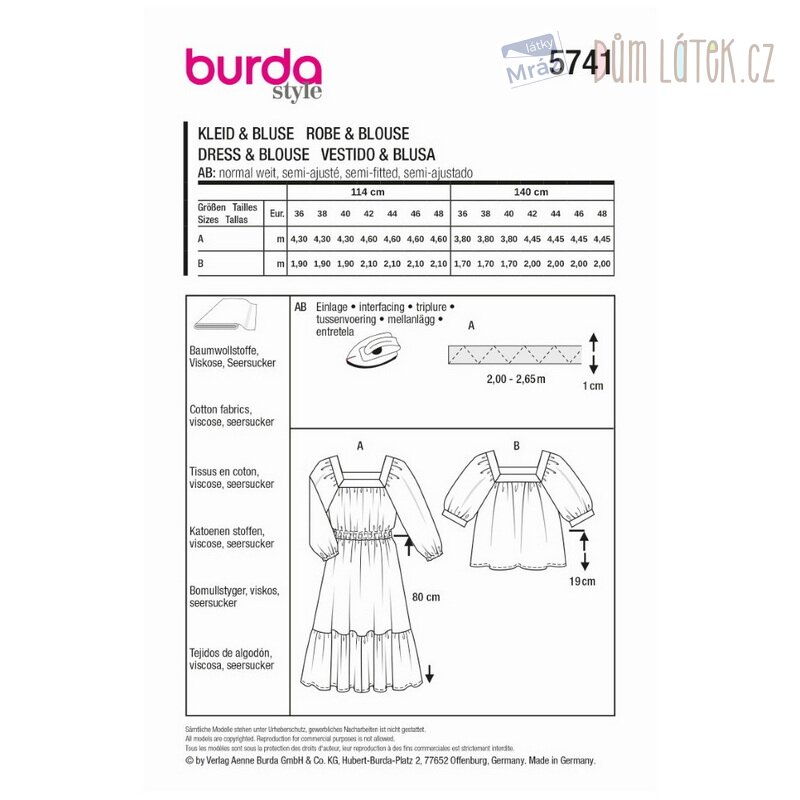Obsahuje 2 varianty střihu na šaty a halenku.