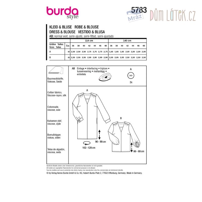 Obsahuje 2 varianty střihu na šaty a halenku.