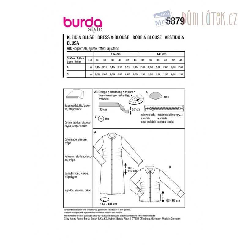 Obsahuje 2 varianty střihu na šaty a halenku.