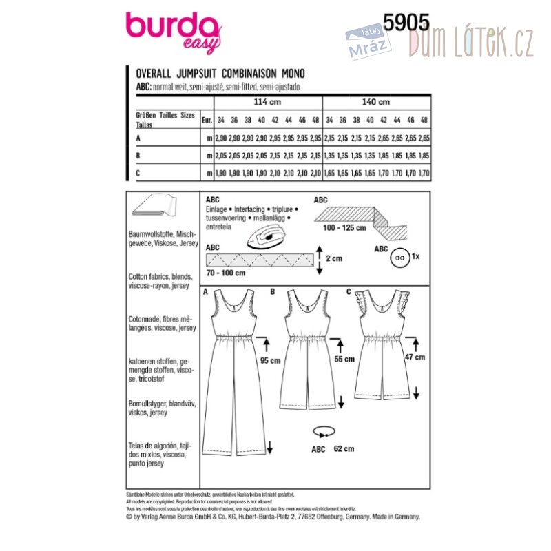 Obsahuje 3 varianty střihu na overal.