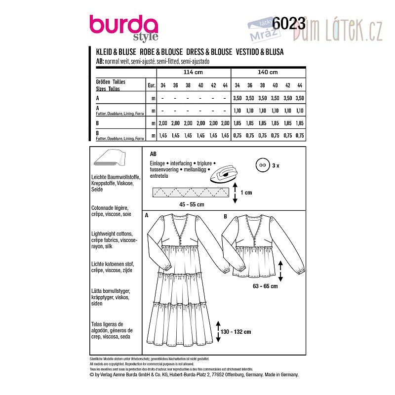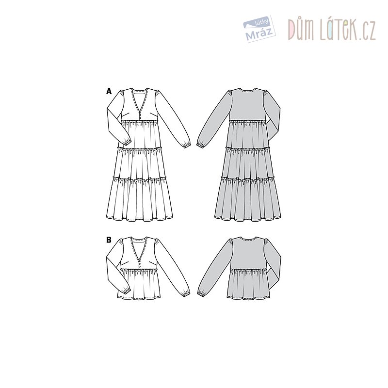 Obsahuje 2 varianty střihu na šaty a halenku.