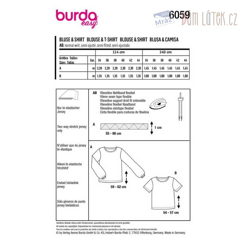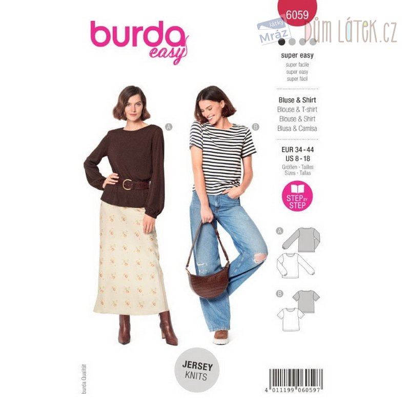 Obsahuje 2 varianty střihu na tričko a halenku.