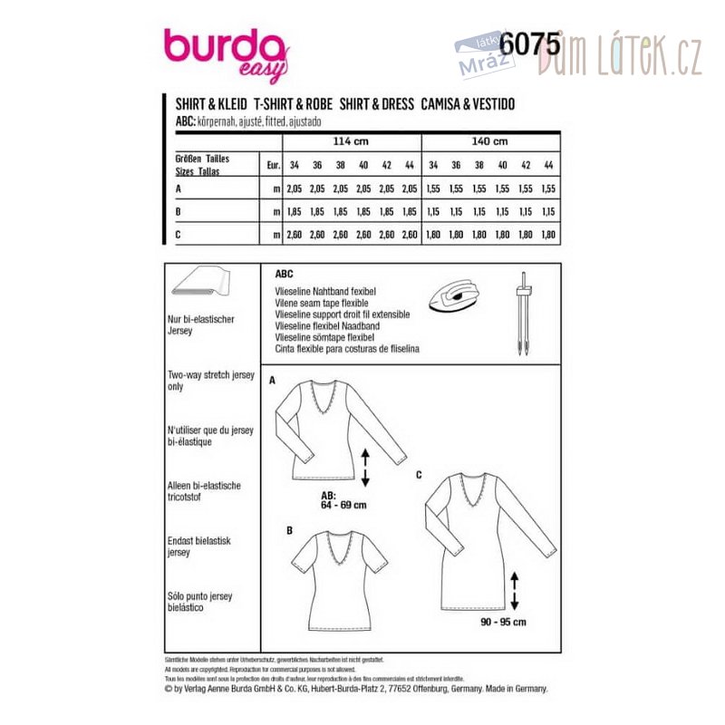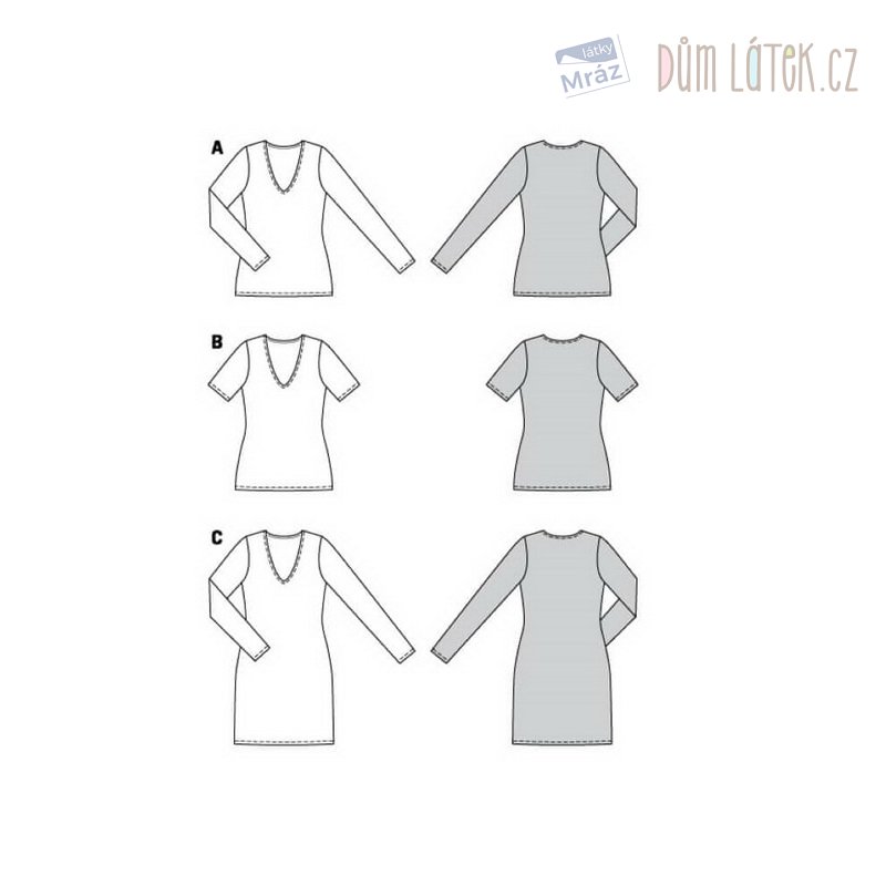 Obsahuje 3 varianty střihu na tričko a šaty.