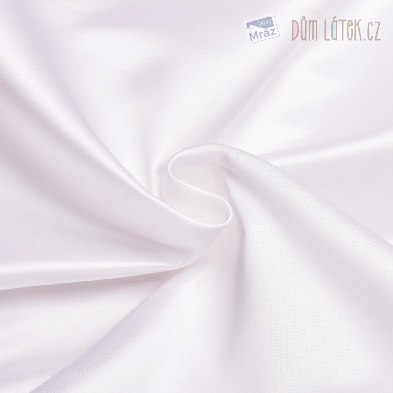 Dekorační látka se saténovým vzhledem v bílé barvě.