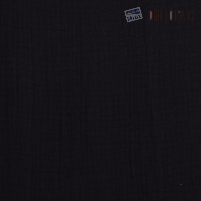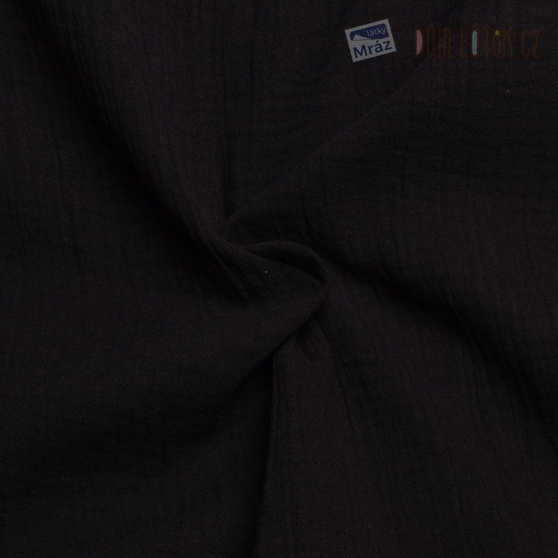 Bio dvojitá gázovina v černé barvě. Látka je lehká, příjemná na omak, měkká, poddajná, vhodná na letní šaty, sukně, košile, kalhoty.
