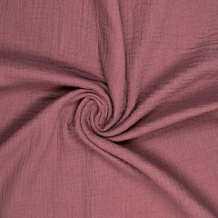 Bio dvojitá gázovina v hnědé/růžové barvě. Látka je lehká, příjemná na omak, měkká, poddajná, vhodná na letní šaty, sukně, košile, kalhoty.