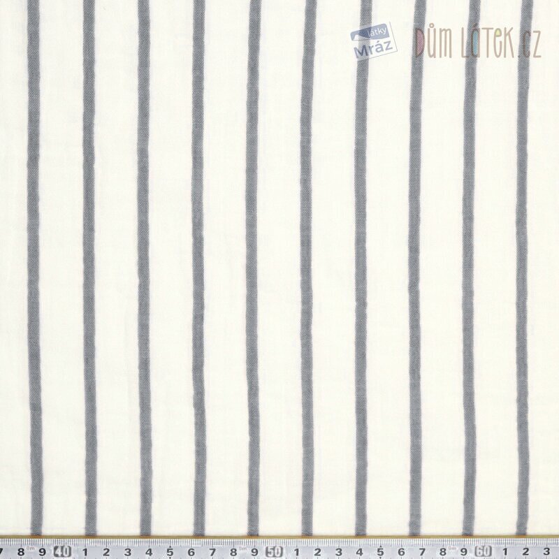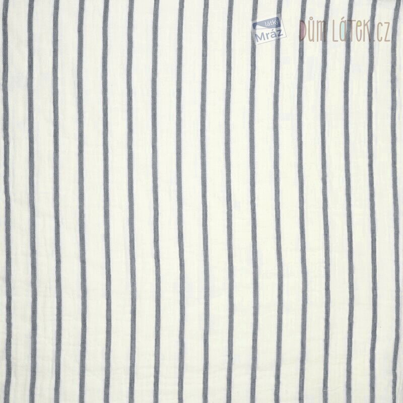 Dvojitá gázovina s pruhy. Látka je lehká, příjemná na omak, měkká, poddajná, vhodná na letní šaty, sukně, košile, kalhoty. Pruhy jsou orientovány po délce návinu.