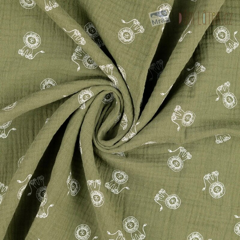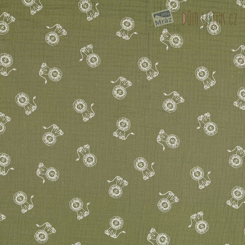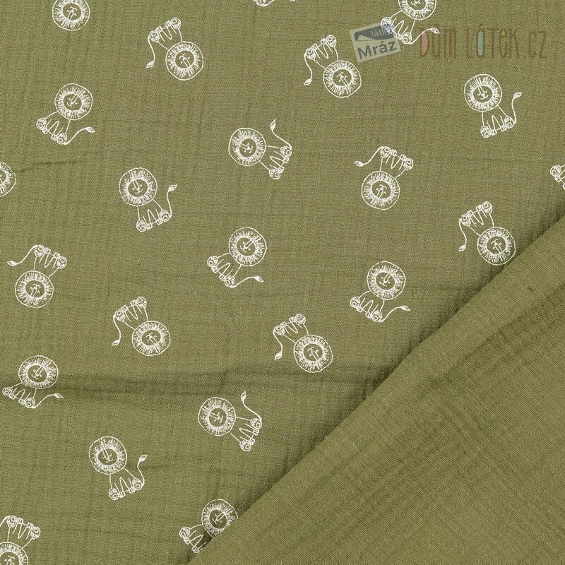 Dvojitá gáza se lvíčky, khaki