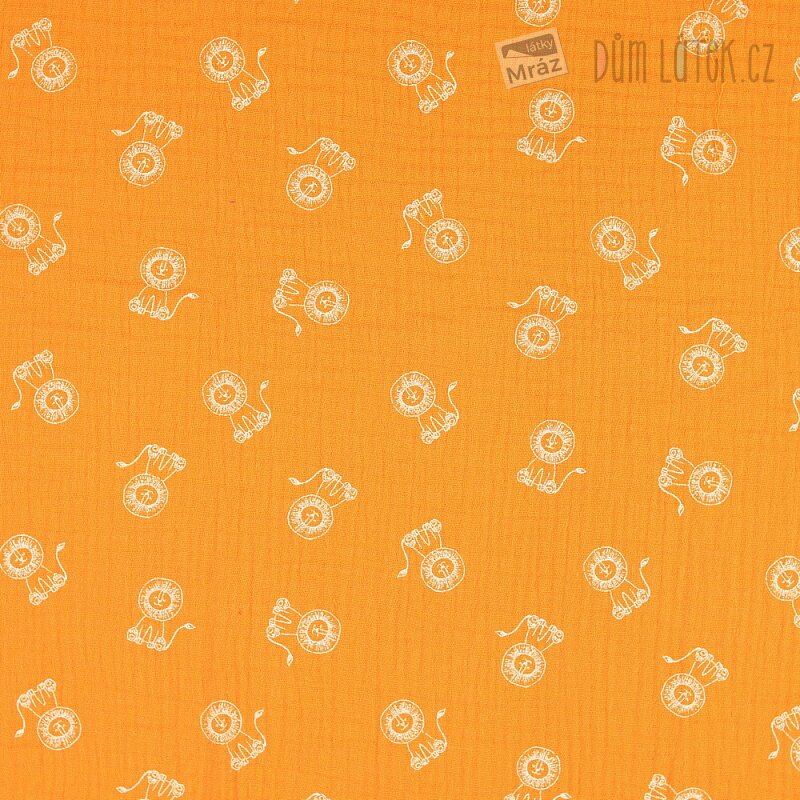 Dvojitá gázovina se lvíčky. Látka je lehká, příjemná na omak, měkká, poddajná, vhodná na letní šaty, sukně, košile, kalhoty.