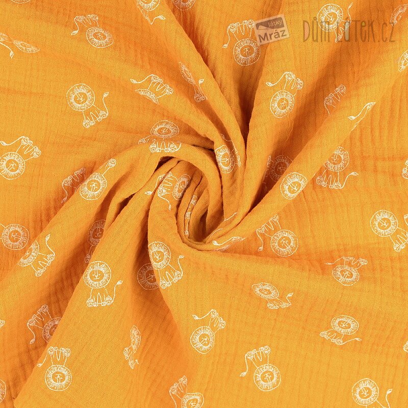 Dvojitá gáza se lvíčky, žlutá/okrová