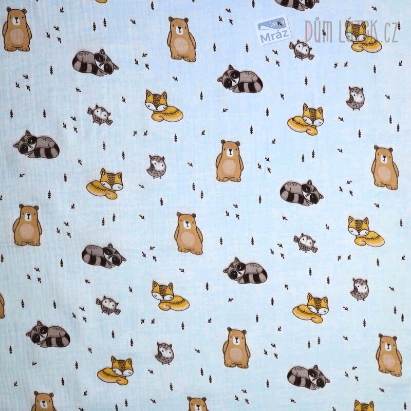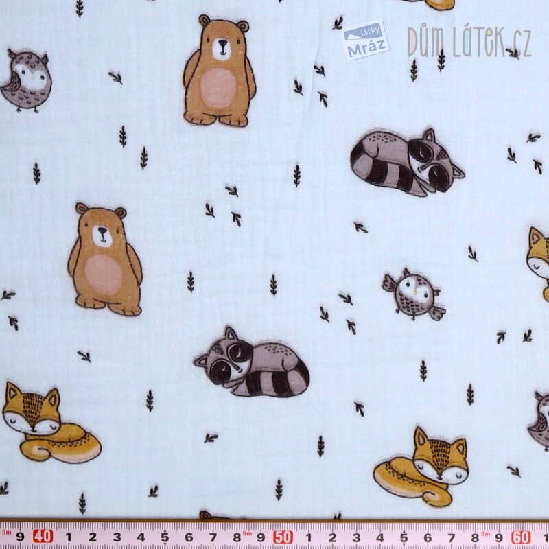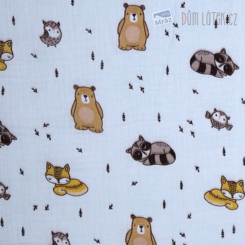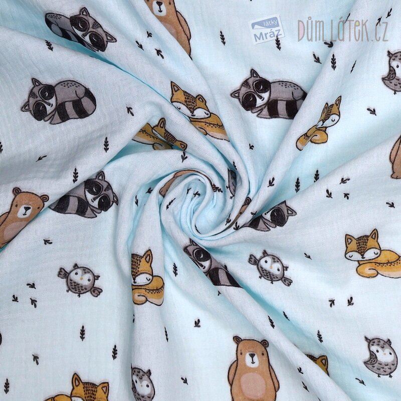 Dvojitá gázovina se zvířátky. Látka je lehká, příjemná na omak, měkká, poddajná, vhodná na letní šaty, sukně, košile, kalhoty.