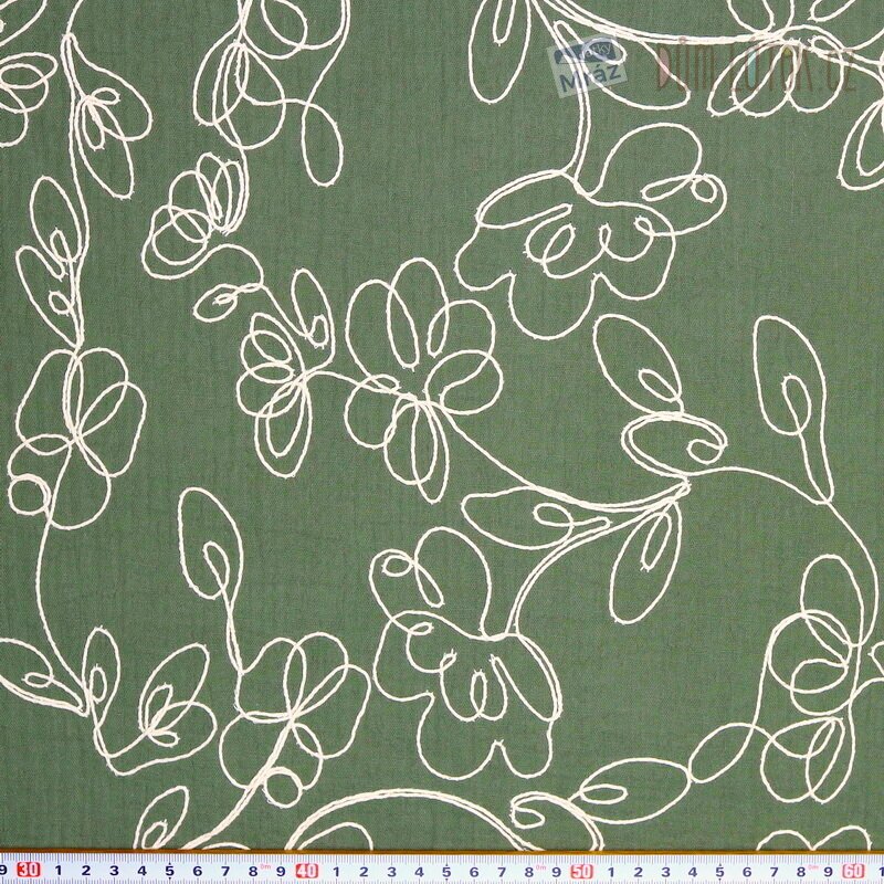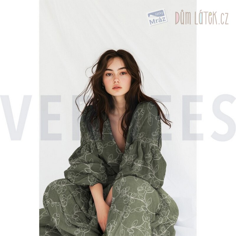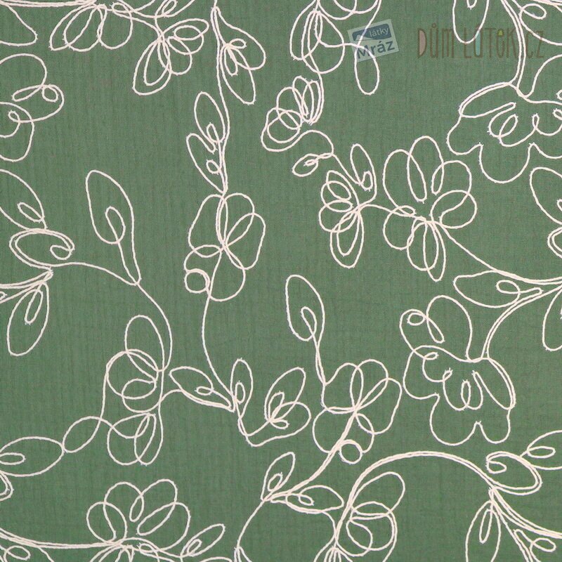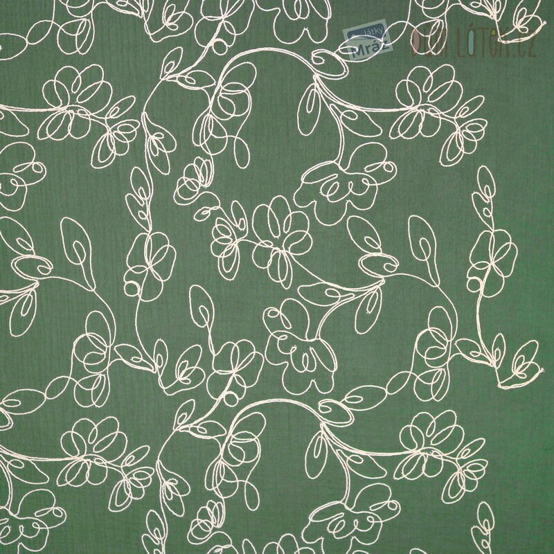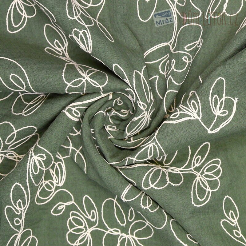 Dvojitá gáza vyšívaná s květy, khaki
