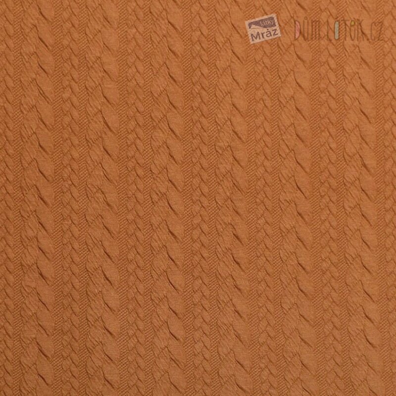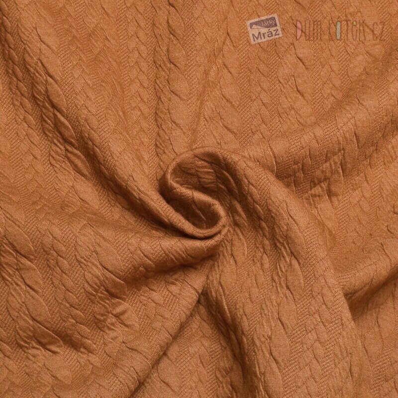 Dvojitý úplet s plastickým copánkovým vzorem, hnědý