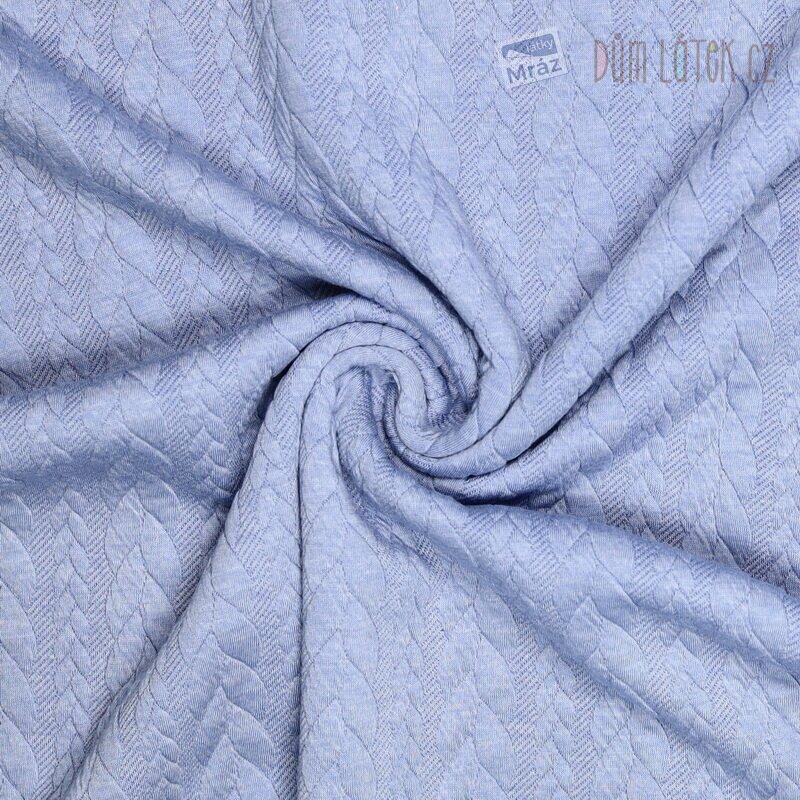 Dvojitý úplet s plastickým copánkovým vzorem, modrý