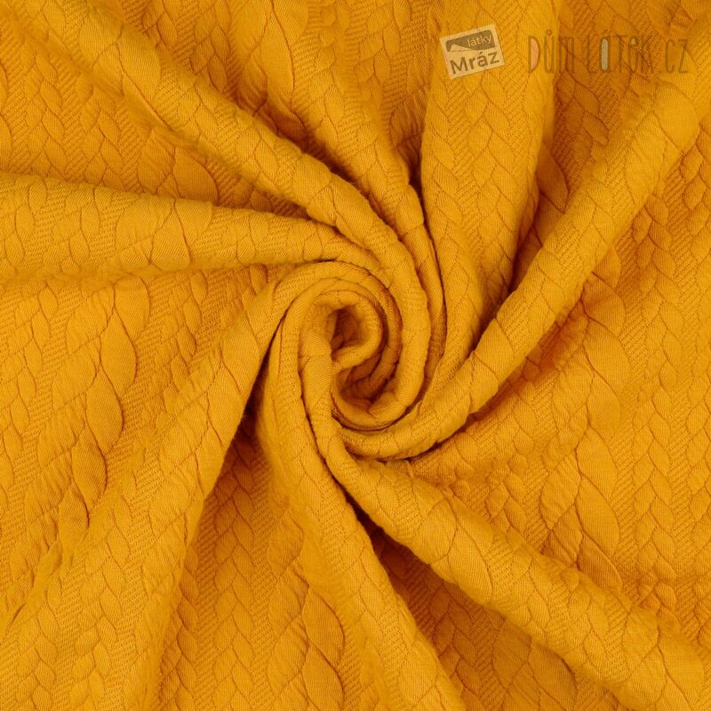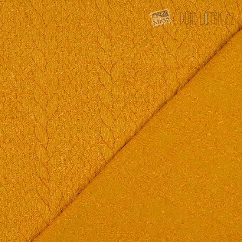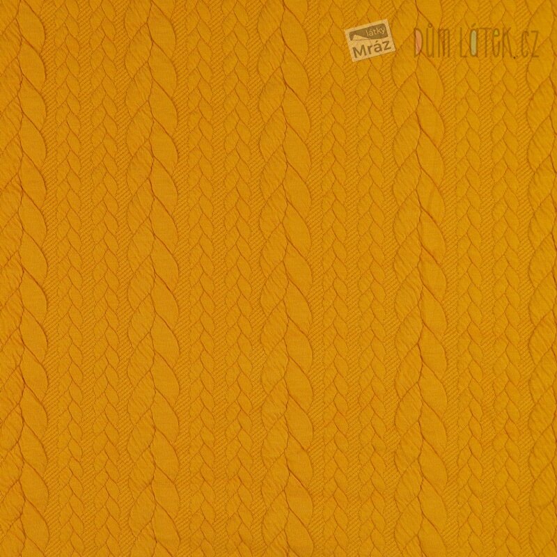 Dvojitý úplet s plastickým copánkovým vzorem, okrový