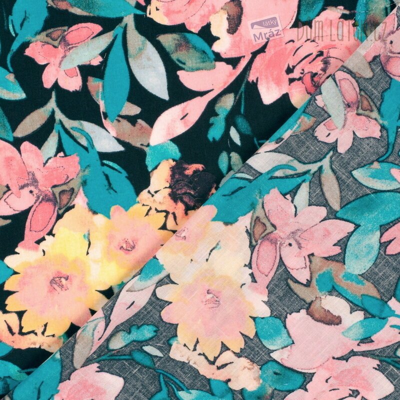 Příjemná mírně průhledná halenkovina s lněným vzhledem s květy.