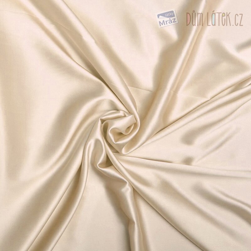Satén hedvábný strečový béžový